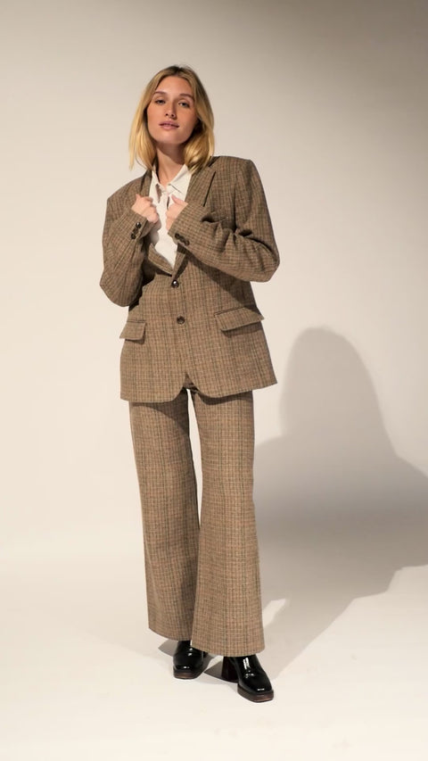 Adoptez un look tendance avec le blazer Le Claire. Sa coupe oversize, qui tombe délicatement sur les épaules, évoque un style "boyfriend" qui séduit par son allure décontractée. Que vous optiez pour un ensemble assorti ou que vous le mixiez avec d'autres pièces, le blazer Marrakech demeure un incontournable intemporel qui se marie harmonieusement avec diverses tenues.